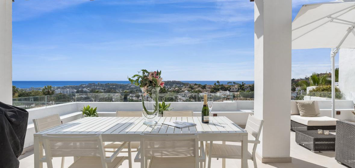 Welcome to Apartment Lumina by LeurLux! Apartment Lumina is a stunning penthouse located in the prestigious Aloha area of Nueva Andalucía, Marbella. Designed across two levels, this luxurious residence offers the perfect blend of comfort and elegance, with breathtaking panoramic views of the sea and Golf Valley.