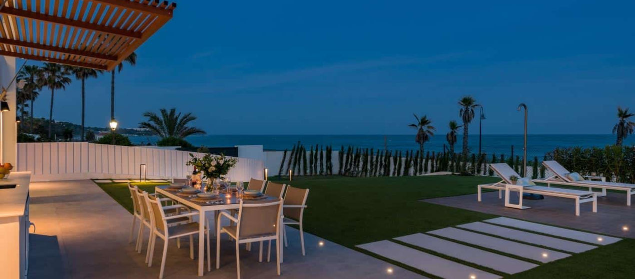 Nestled on the beachfront, surrounded by acclaimed eateries, boutique shops, and renowned golf courses, it epitomizes the essence of Costa del Sol living. The villa boasts 5 bedrooms, each with an ensuite bathroom, meticulously designed to provide unparalleled comfort and privacy. Expansive floor-to-ceiling windows flood the interior with natural light, offering breathtaking views of the sea, the Rock of Gibraltar, and the Coast of Africa, seamlessly merging indoor and outdoor spaces.